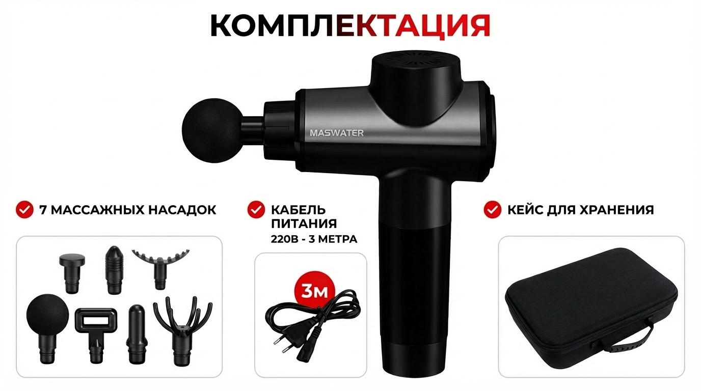 Свобода от «подзарядок». Да, здесь есть кабель. Но это 3 метра настоящей свободы. Массируйте на диване перед телевизором, на кровати или на полу после тренировки. Розетка есть везде, а значит, везде есть и ваш личный массажист.
